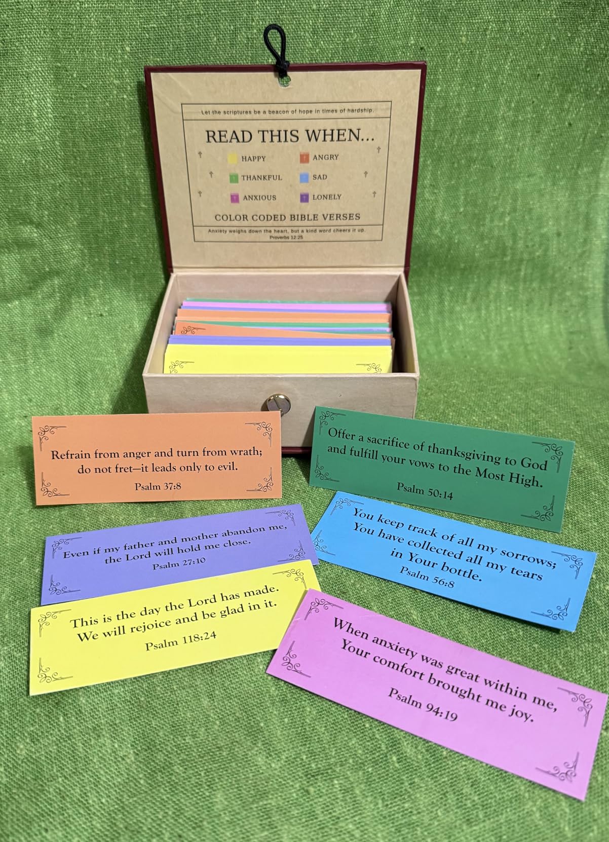 Each box includes 150 carefully selected verses, organized to help you find encouragement based on how you’re feeling.